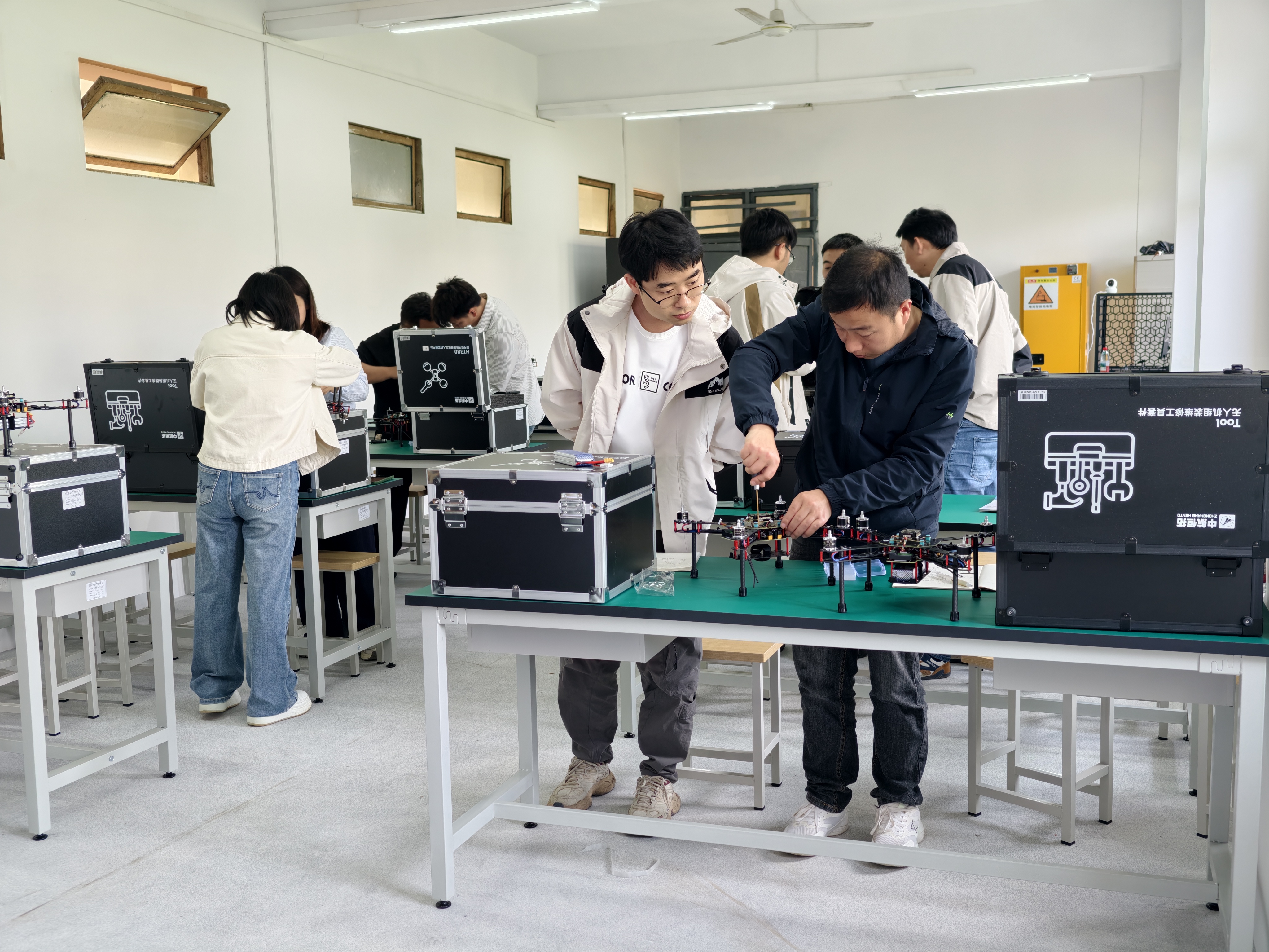 本次校企合作的实训设备,涵盖了无人机零部件认知、组装调试、飞行测试到安全防护全流程的专业设备:教学拆装调试无人机实训平台专为教学场景打造,结构清晰、模块化设计,便于学生直观理解无人机系统构成,掌握拆装与调试核心技能。