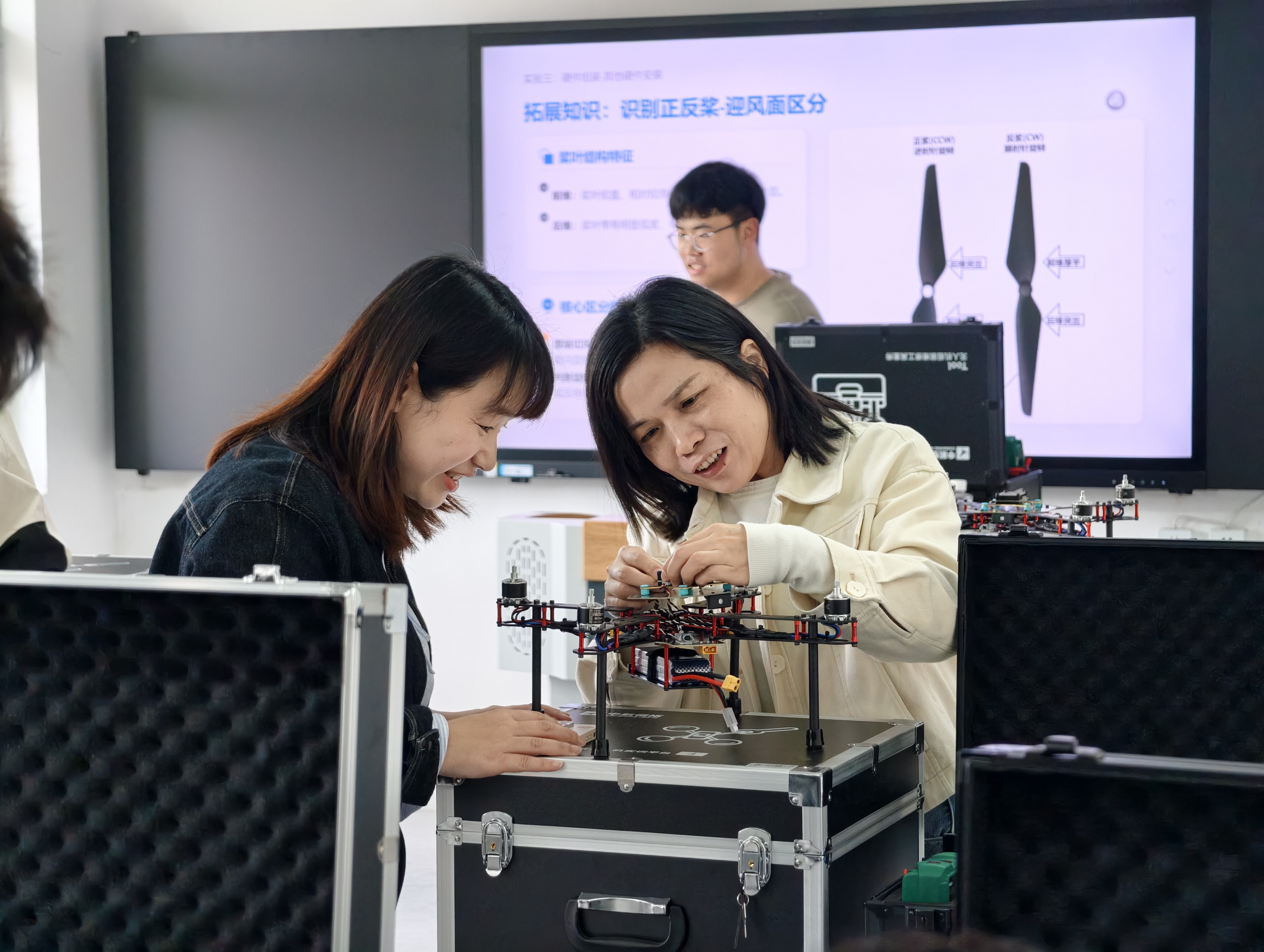 本次校企合作的实训设备,涵盖了无人机零部件认知、组装调试、飞行测试到安全防护全流程的专业设备:教学拆装调试无人机实训平台专为教学场景打造,结构清晰、模块化设计,便于学生直观理解无人机系统构成,掌握拆装与调试核心技能。