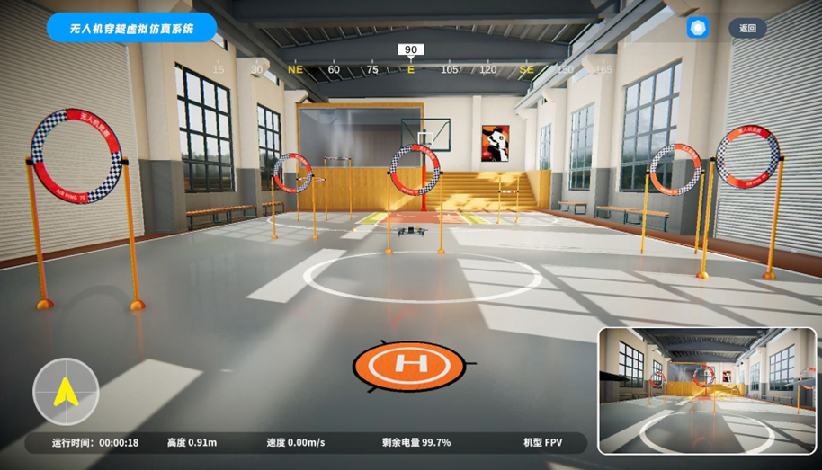 无人机穿越障碍模块通过操作FPV无人机穿越多个设定的赛道障碍进行训练,来提升无人机驾驶技能。